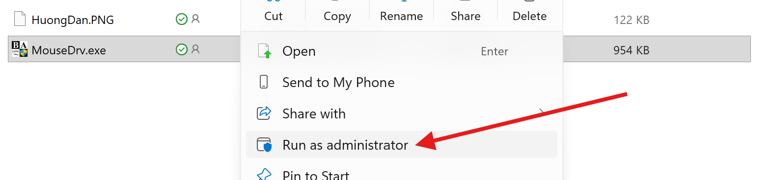 Chạy MouseDrv.exe với quyền Adminitrator.