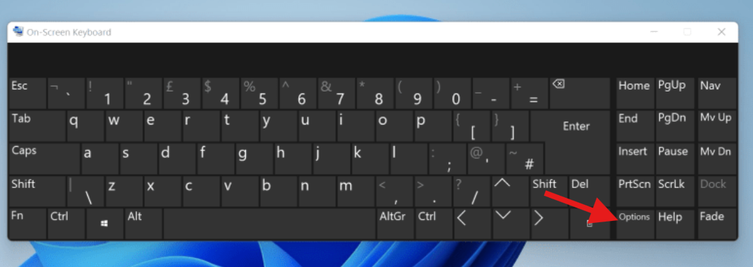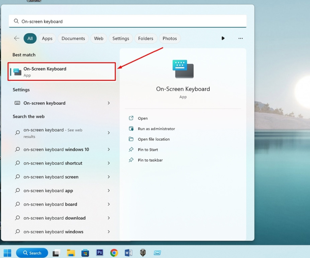 Vào start -→ gõ -→ on-Screen Keyboard.