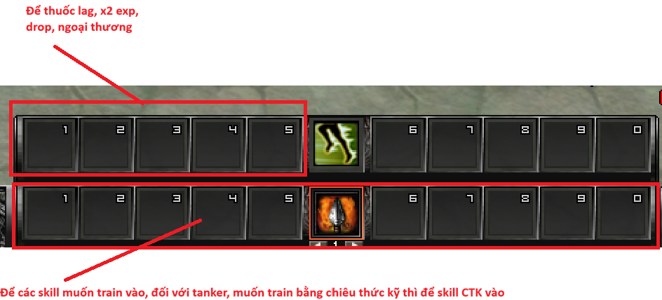 - Auto tự sử dụng vật phẩm mỗi 10s (để vật phẩm ở ô Ctrl + 0-→5).