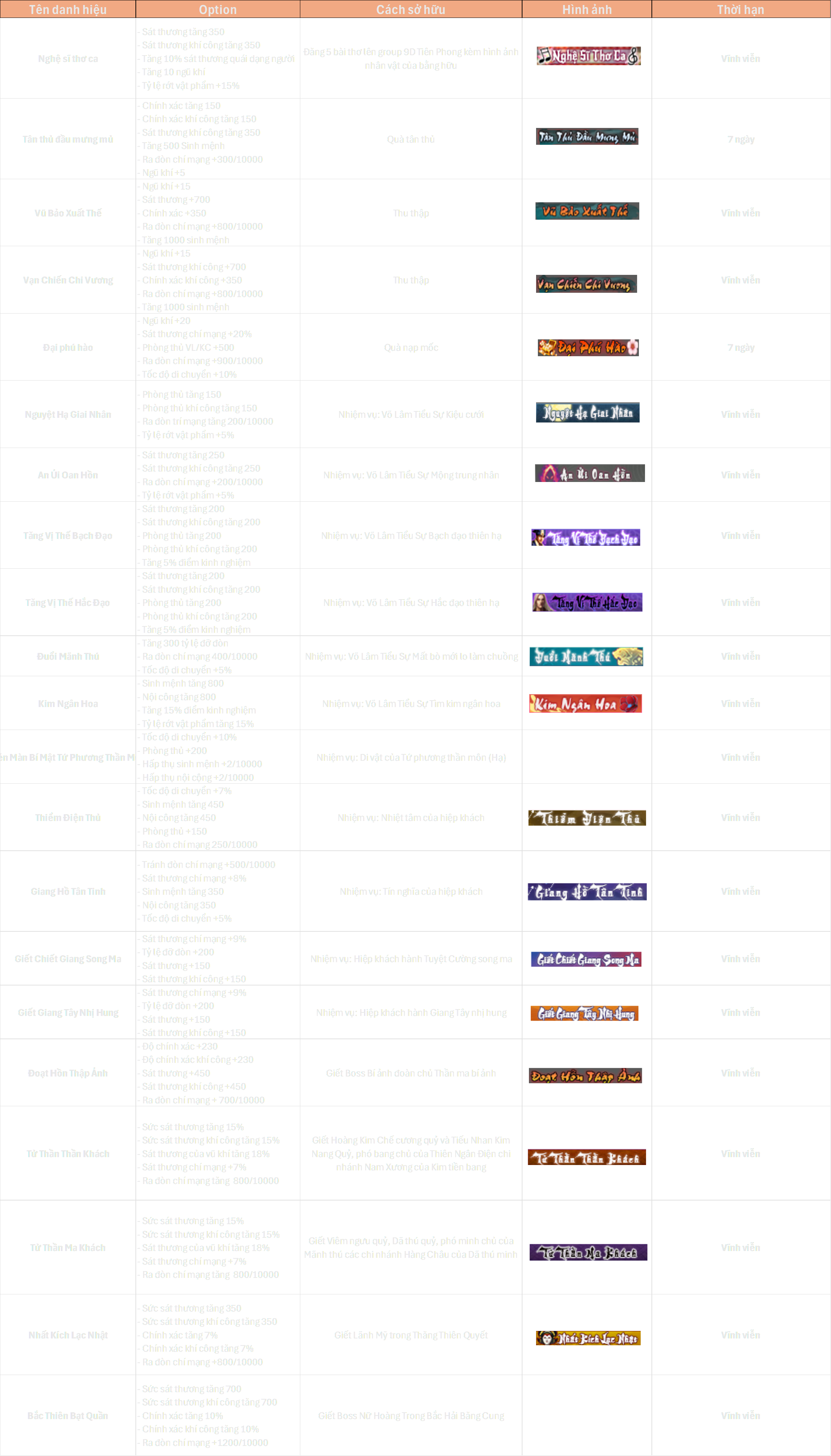 Tổng hợp danh sách danh hiệu trong 9D Tiên Phong, cập nhật liên tục.