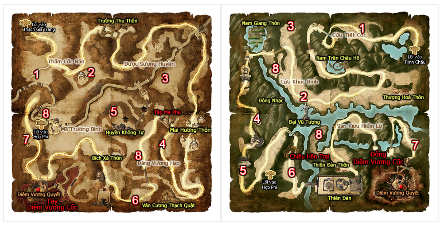 Vị trí boss ở các map tại Cửu Long Tranh Bá Tiên Phong
